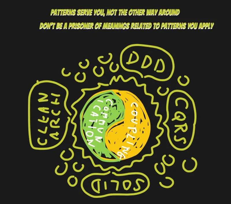 All patterns are to look at problems from different perspectives. By the end of the day, you must deliver a product close to a customer’s domain and a product that can evolve.